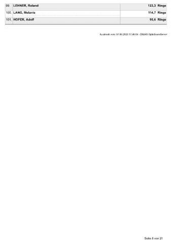 99. LEHNER, Roland 123,3 Ringe 100. LANG, Melanie 114,7 Ringe 101. HOFER, Adolf 95,6 Ringe Ausdruck vom: 07.06.2023 17:48:04 - DISAG OpticScoreServer Seite 8 von 21